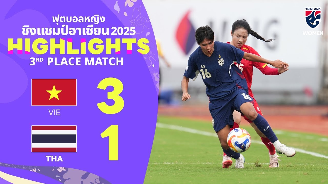 #ไฮไลท์ฟุตบอล [ เวียดนาม(ญ) 3 - 1 ไทย(ญ) ] ฟุตบอลหญิง ชิงแชมป์แห่งชาติอาเซียน (นัดชิงอันดับที่3) 2025/20.8.68